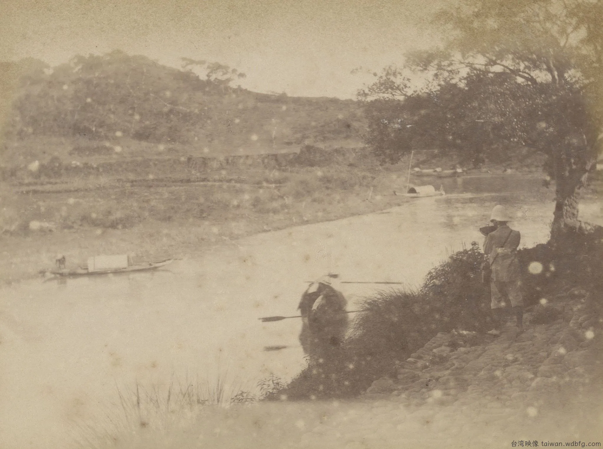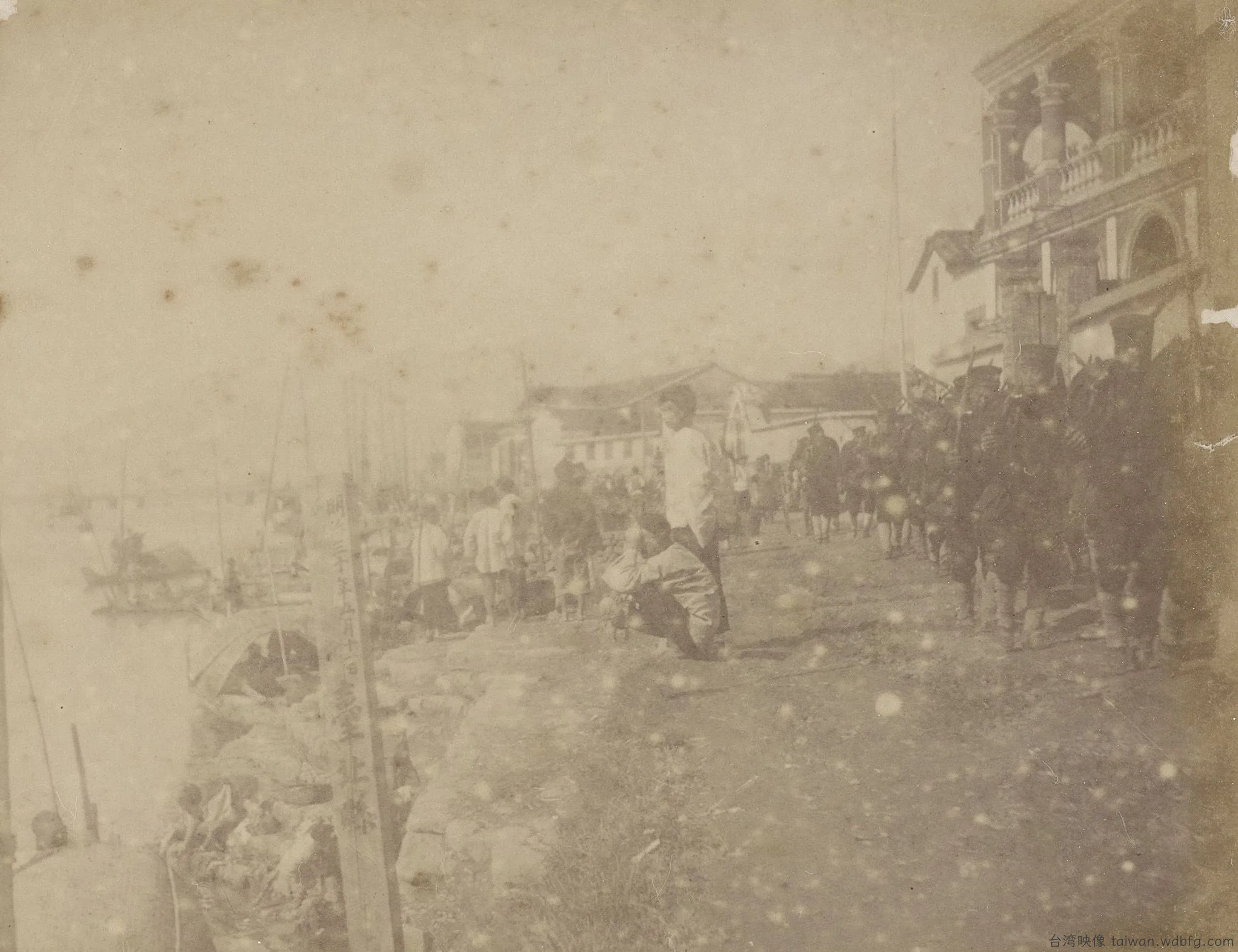 1895年,日軍自基隆澳底登陸,一路往內地推進,清軍節節敗退,潰不成軍,流竄進城。原來繁榮熱鬧的臺北城頓然失序,映入眼簾盡是滿目瘡痍。攝影家喬治.尤維達爾.普萊斯(George Uvedale Price,1853-1929)站在淡水河的河岸邊,看著眼前兵 … · more ·